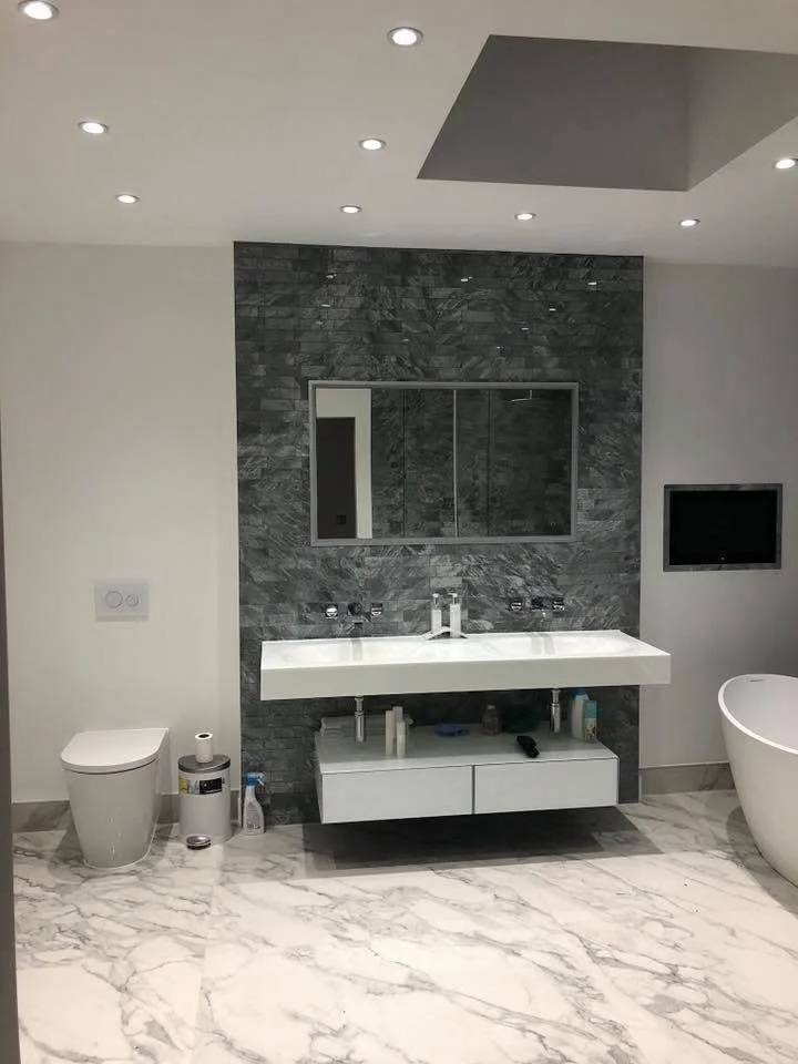 Bathroom installs carried out in conjunction with Alpha Bespoke Bathrooms.